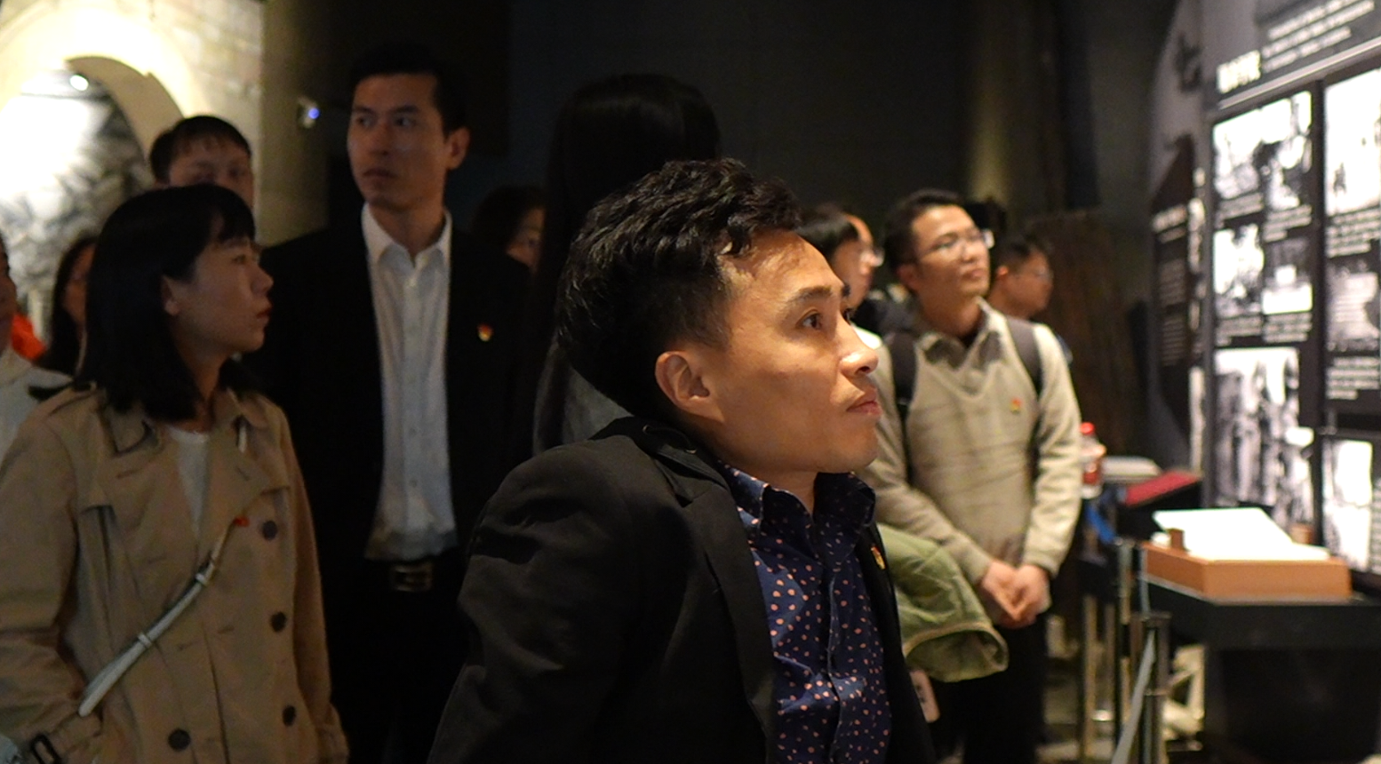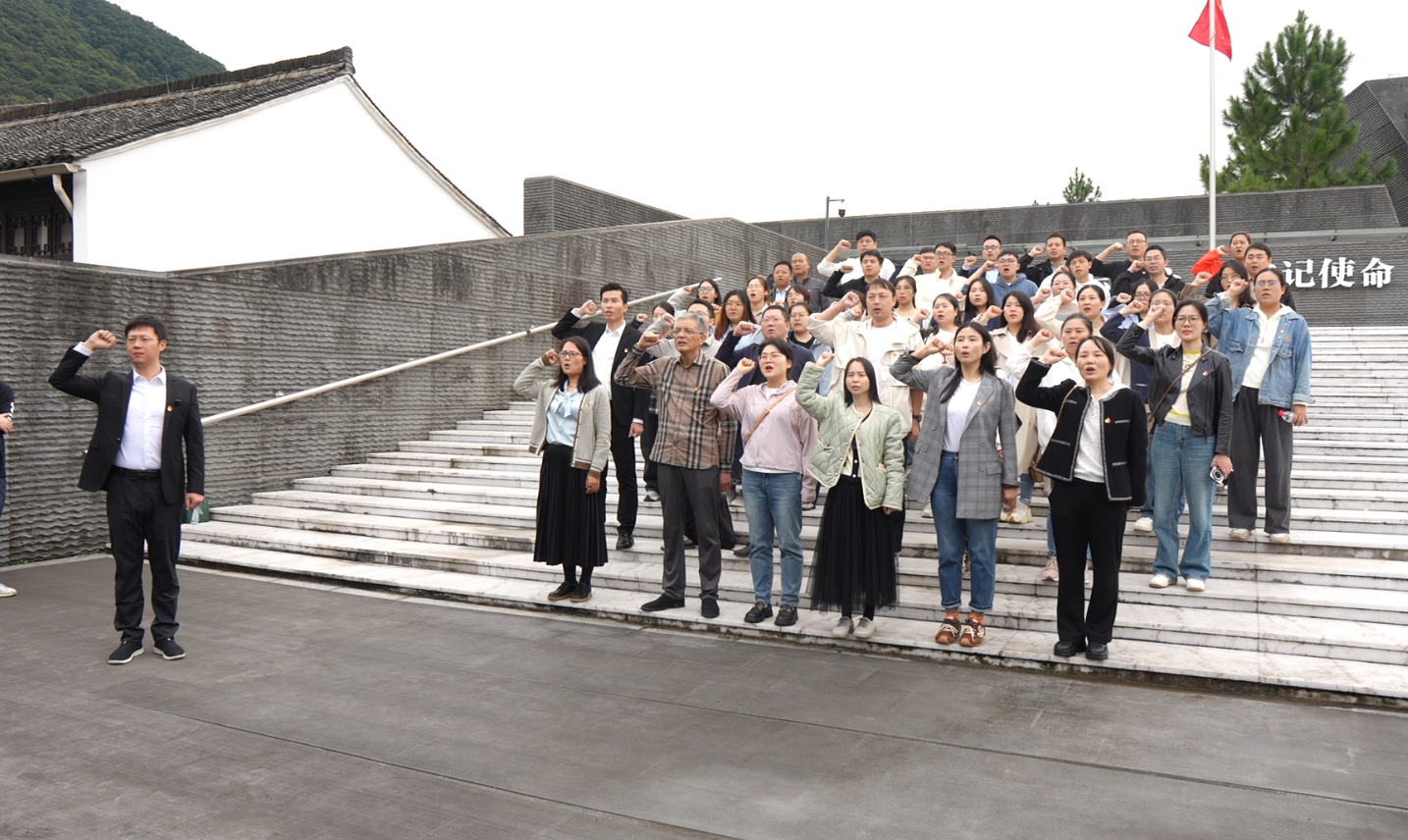 参观学习结束后,党员们怀着崇敬的心情,面向鲜艳的党旗有序列队。在党委书记吴许杰同志领誓下,党员们举起右拳,庄严宣誓,铿锵誓言回荡在纪念馆中。