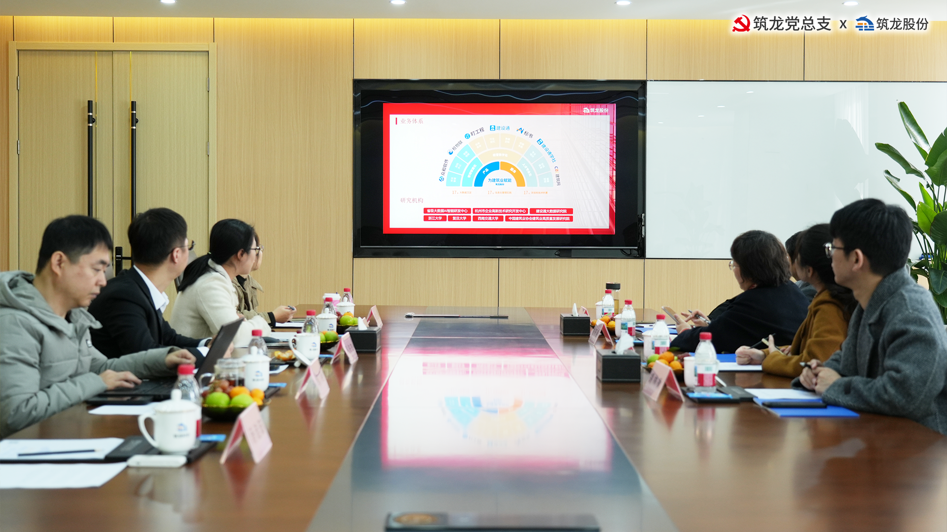 交流伊始,筑龙股份党总支书记方必清详细介绍了筑龙股份发展历程、组织架构及业务布局、党建建设成果。公司坚持以党建引领企业发展,构建了独具特色的“1235”党建体系,推动党建与业务深度融合,形成了务实高效的组织氛围。